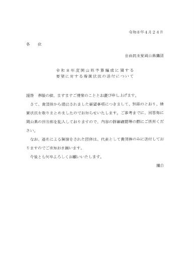 令和8年度岡山県予算編成に関する要望に対する措置状況の送付について